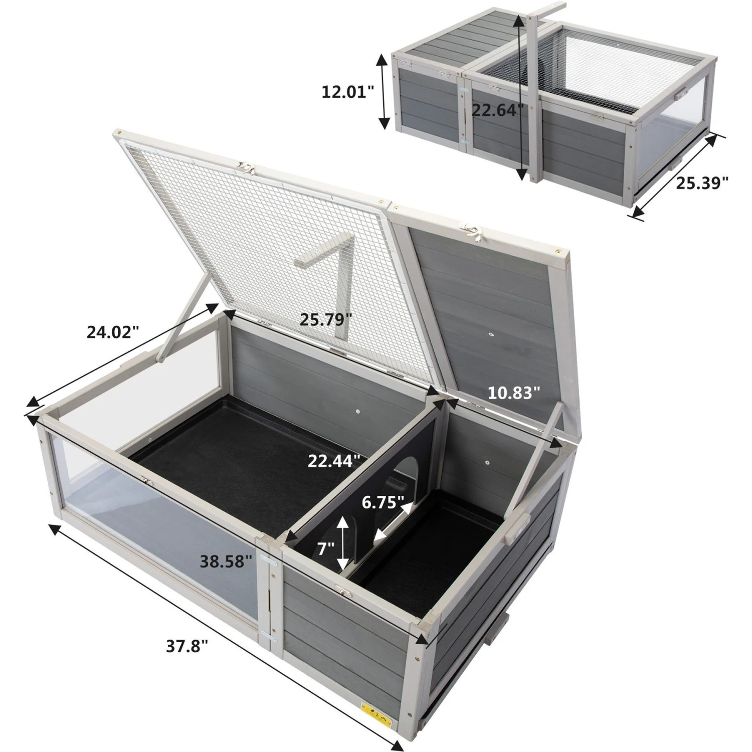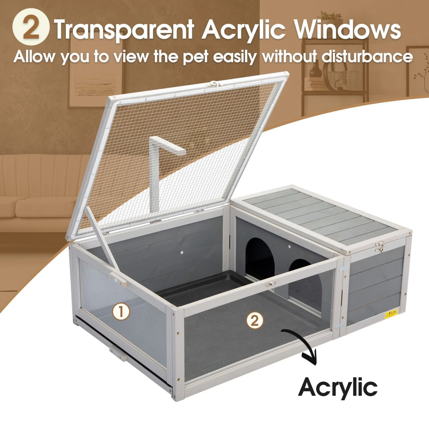 Coziwow By Jaxpety Wooden Tortoise House With Removable Trays Reptile Habitat, Grey