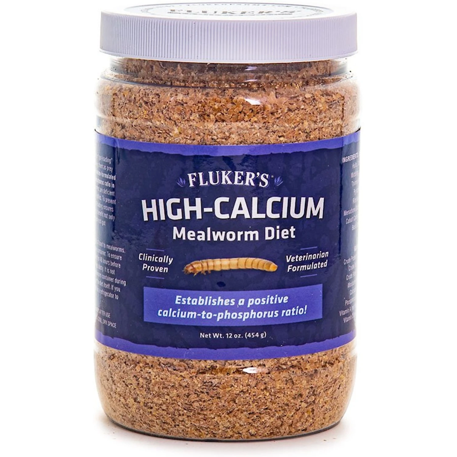 - Establishes a positive calcium to phosphorus ratio in live mealworms.