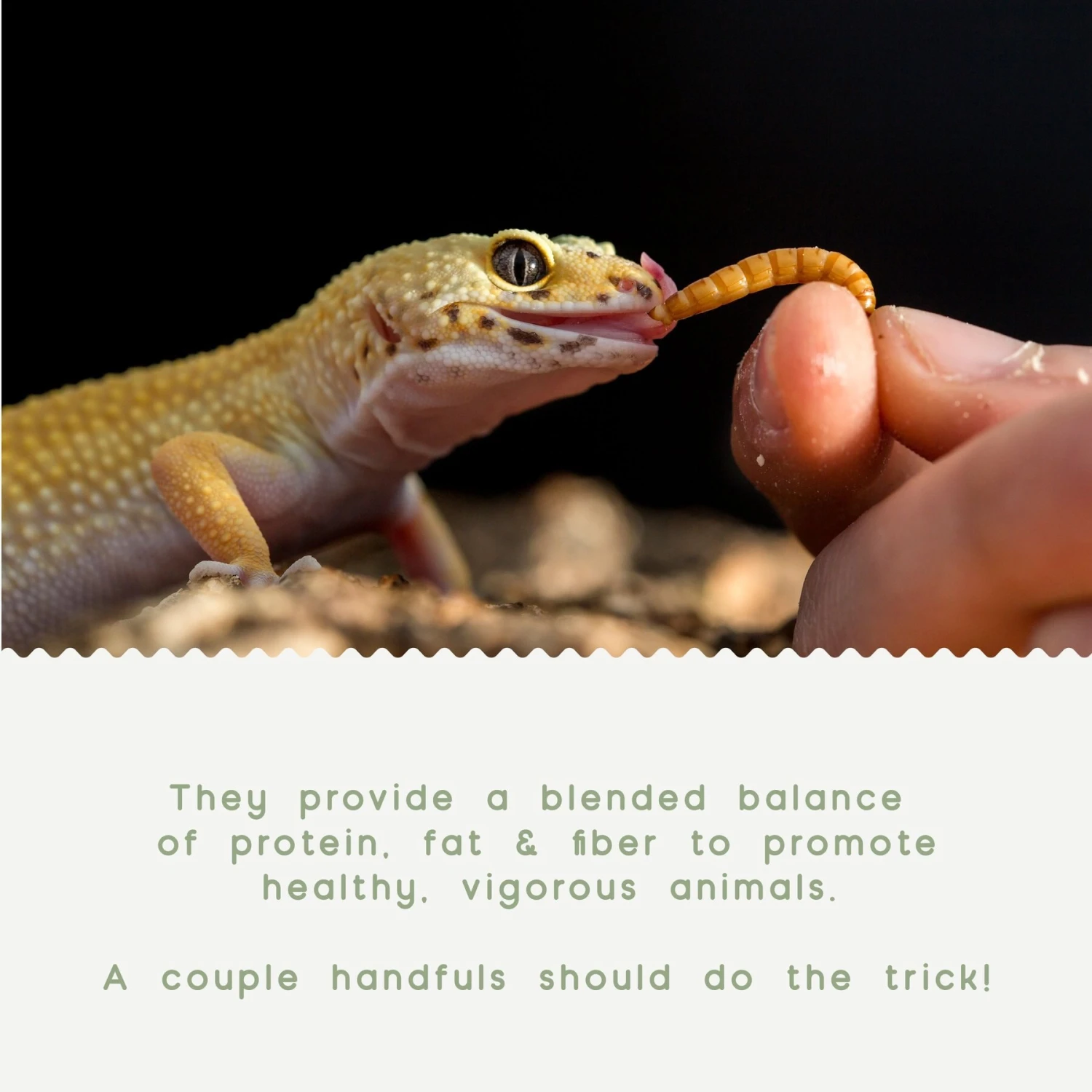 - Dried mealworms and insect meal treats are tasty and nutritious.
