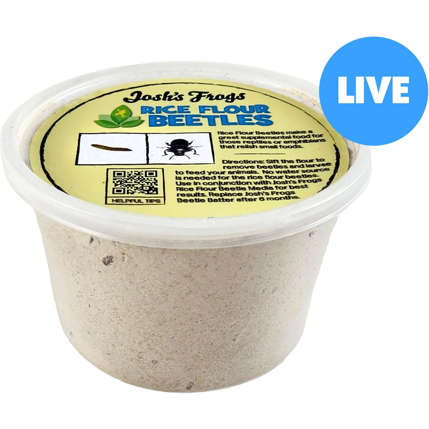 Josh’s Frogs Rice Flour Beetle Culture Live Feed Reptile Food, 16-oz Tub
