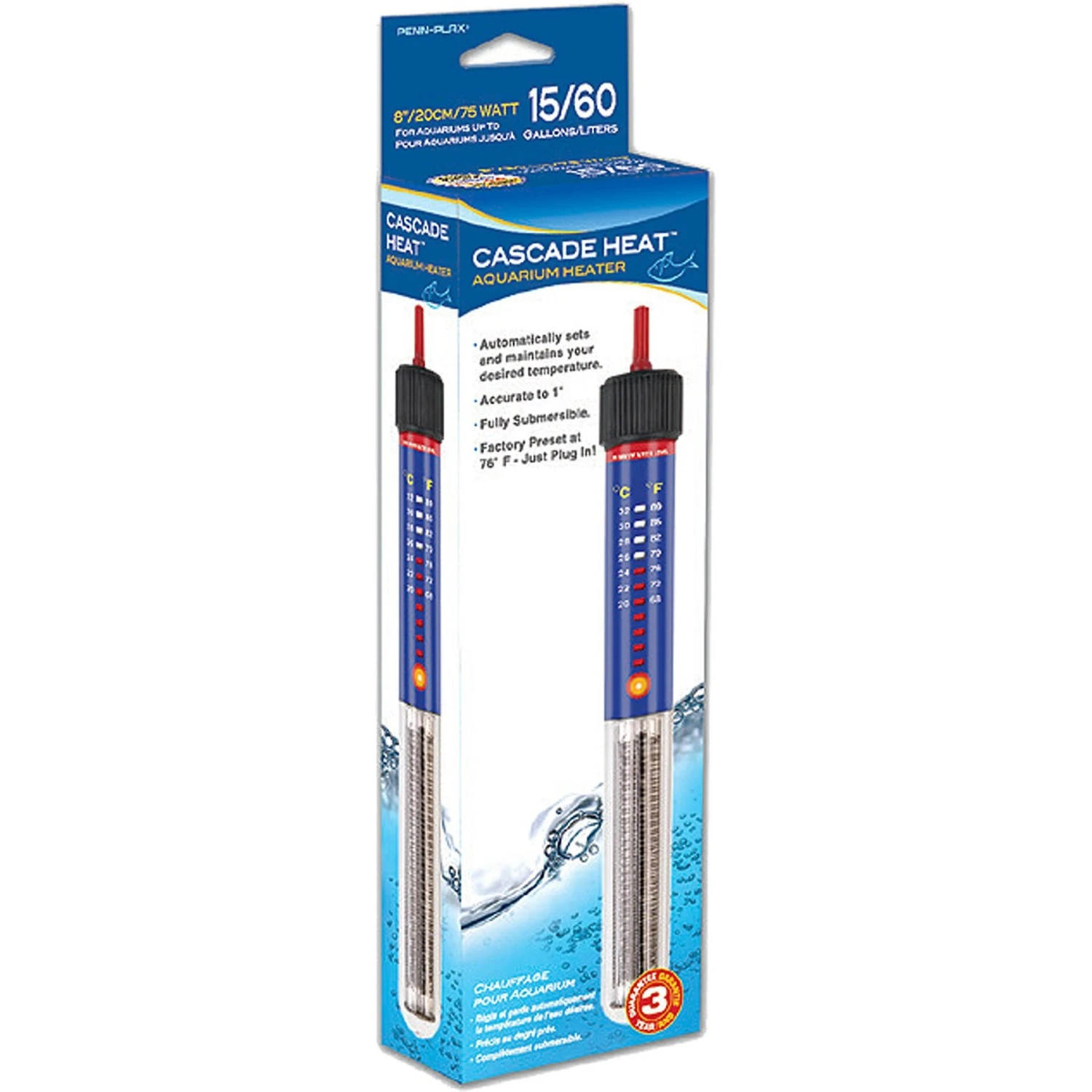 Penn-Plax Cascade Heat Preset Submersible Aquarium Heater, 8-in