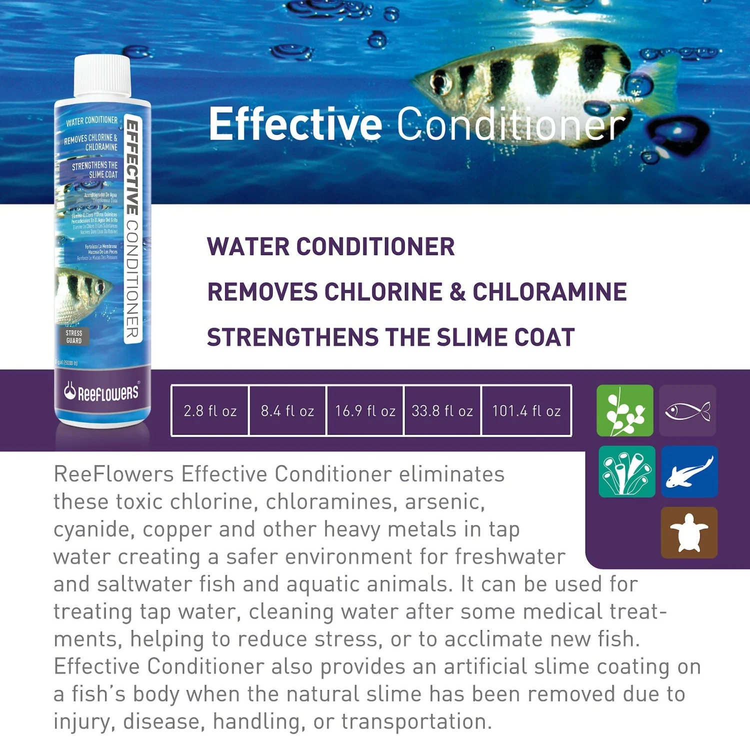 - Formulated to help create a safer environment for fish and other aquatic animals.