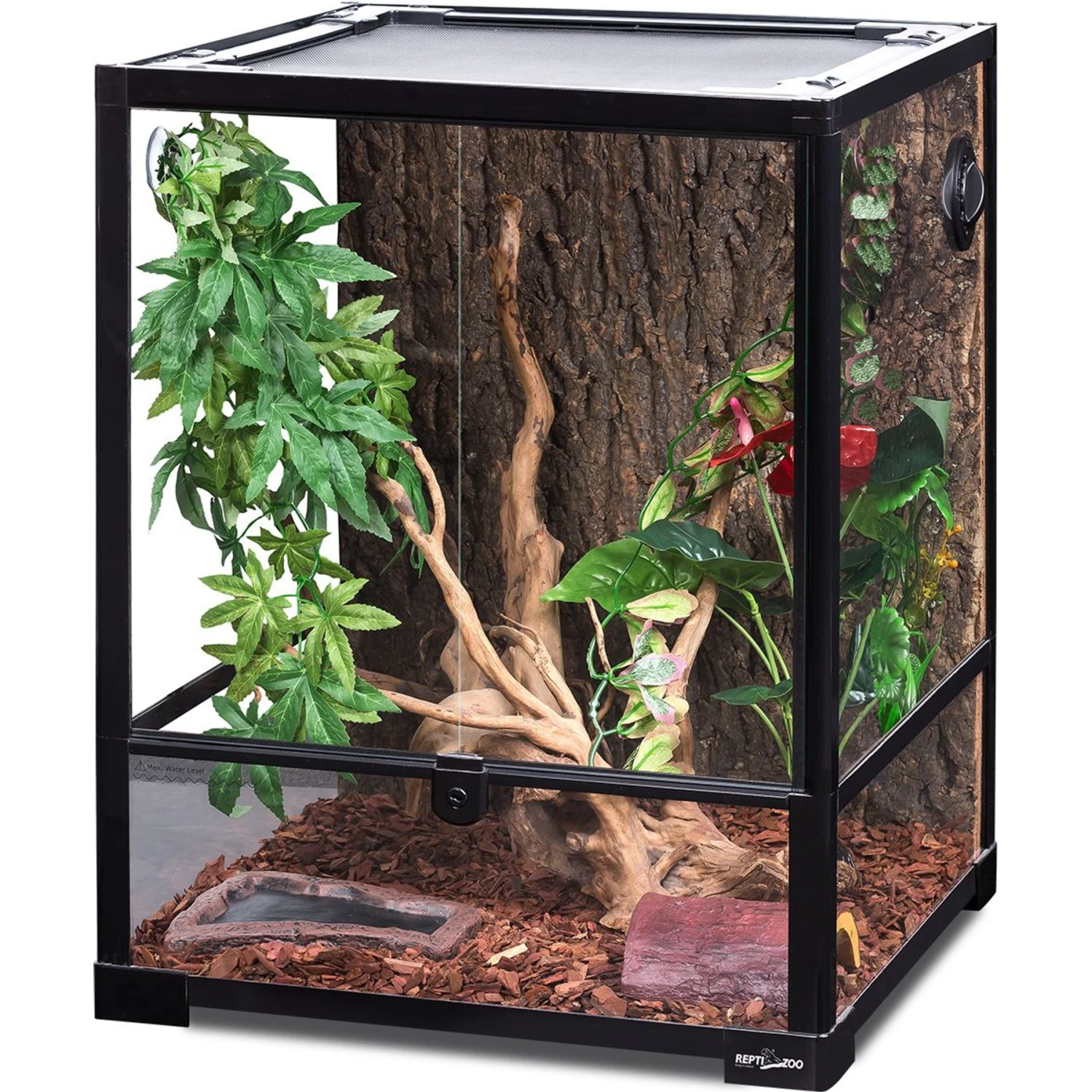 - Removable top mesh screen for proper airflow and full spectrum, UVB, and IR light penetration.