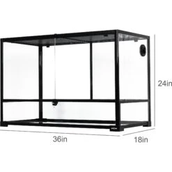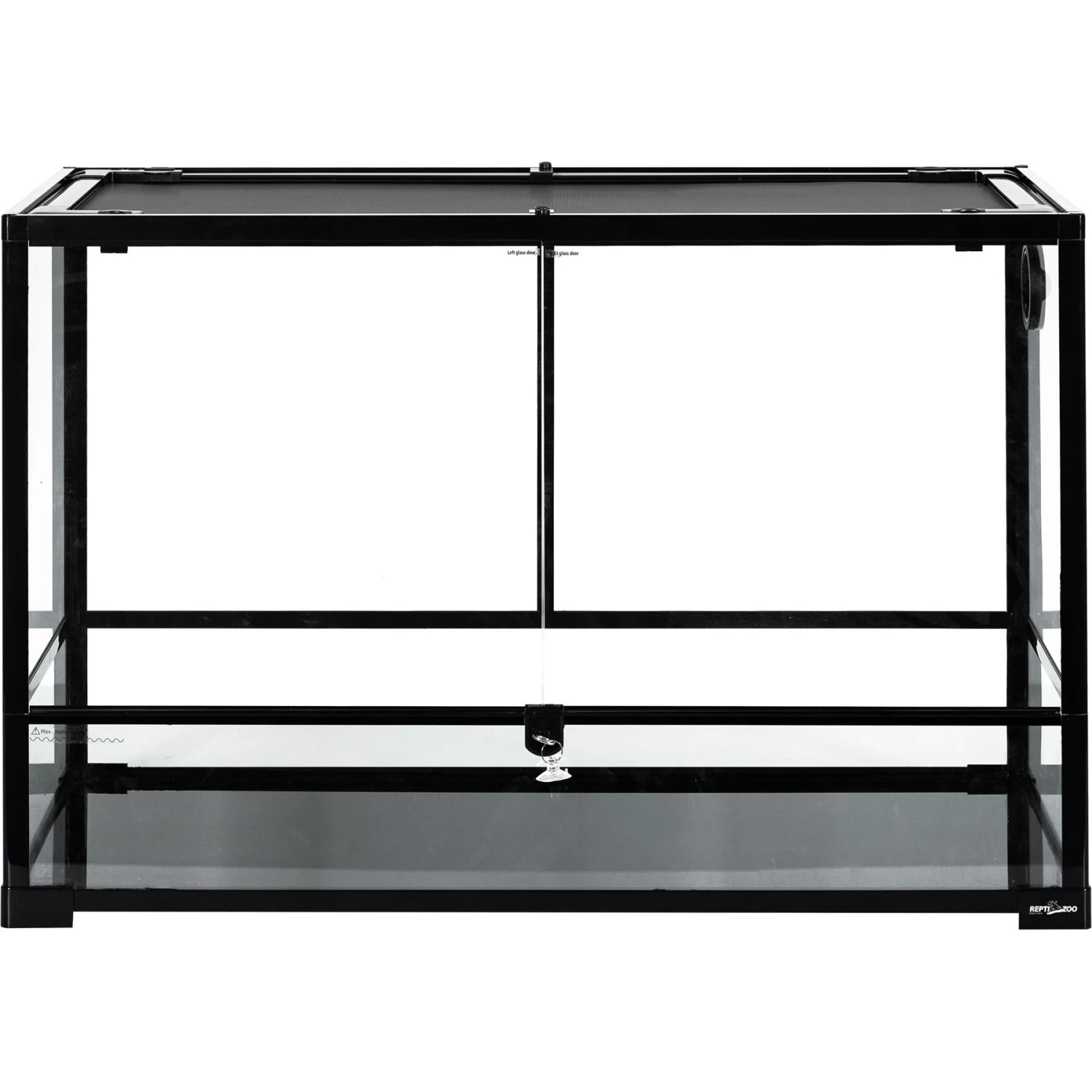 Give your scaly friend a cozy home of his own with REPTIZOO 67-gal Full Tempered Glass Reptile Terrarium! This roomy terrarium is outfitted with front opening doors that makes it easy for you to feed your buddy or add decorations. Made of durable, heat tempered glass, this insulating enclosure is suitable for damp and humid conditions and is easy to clean. The screen top provides your pal with plenty of ventilation and allows UV and infrared light to penetrate through. Plus, the security buckle on the lid keeps your reptilian companion in and intruders out. Its waterproof base safely holds water up until the hinged doors as well. This is also great for use with Aquatic Turtles, Terrestrial Turtles, Tortoises, Aquatic Amphibians, Terrestrial Amphibians, Invertebrates, Lizards, and Snakes.