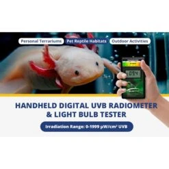 Monitor your cold-blooded pal’s UV needs with Solarmeter Model 6.5R UV Index Meter Reptile Accessory! Made in the USA, this handheld radiometer has a compact, durable design that makes it easy to use for years to come. It can accurately detect erythemal weighted UV from 280-400 nanometers, so you can quickly and easily check that your scaly friend is getting the correct levels of light he needs to stay happy and healthy. With a single-button operation, this device is ideal for routine UV maintenance or for initial reptile habitat setups. This is also great for use with aquatic turtles, terrestrial turtles, tortoises, lizards, and snakes.