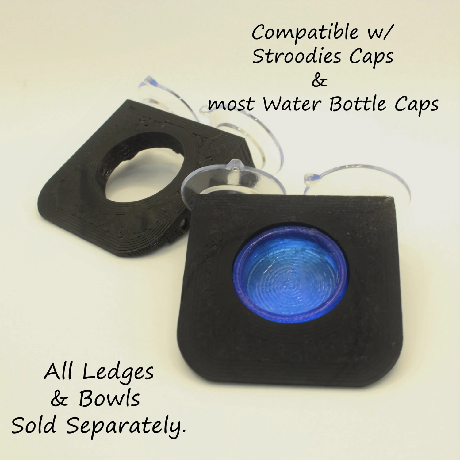- Included in the feeding ledge is a cap-sized slot that fits most standard water bottle caps.
