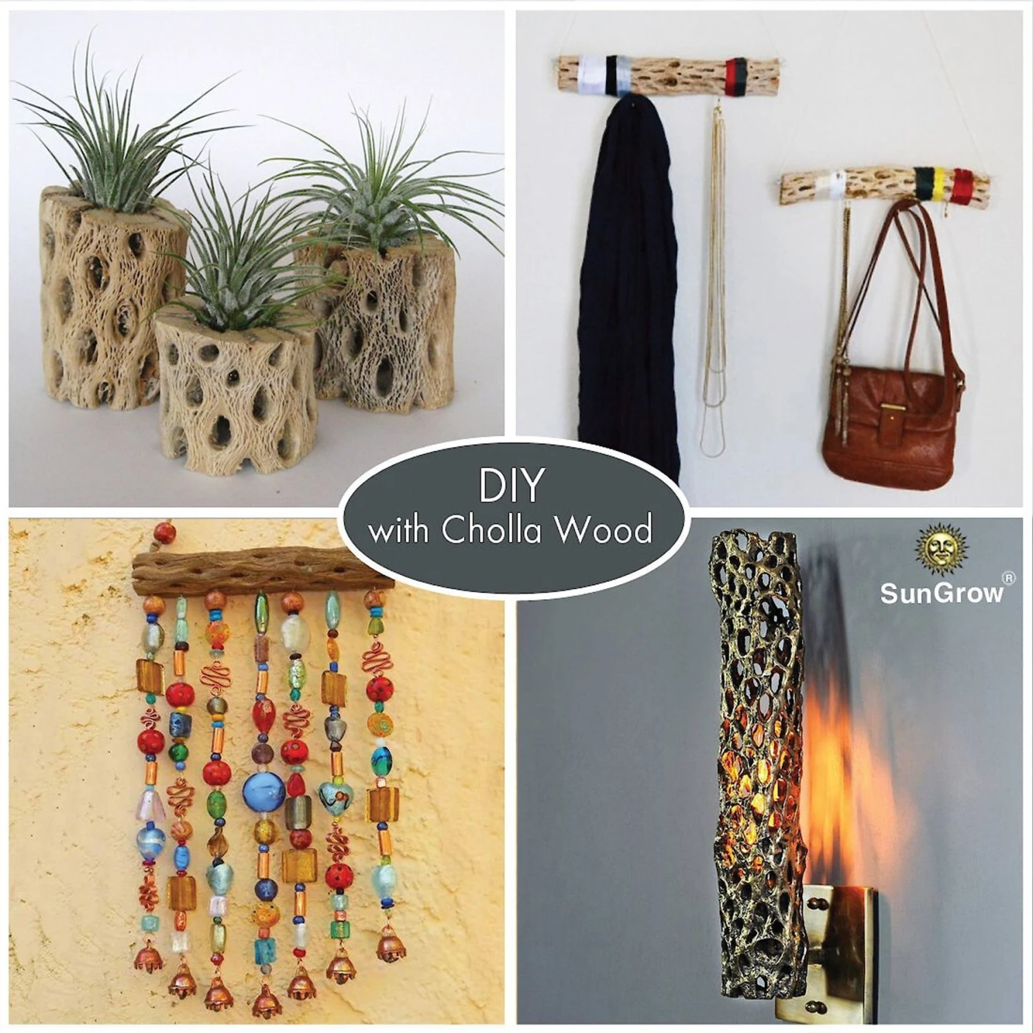 - Natural decoration derived from the dried husk of a Cholla cactus.