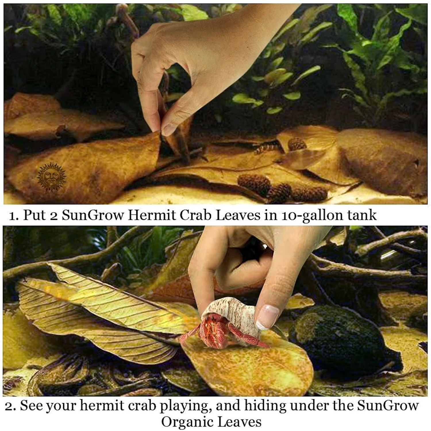 - Suitable for hermit crabs, snails, shrimp, and fish.