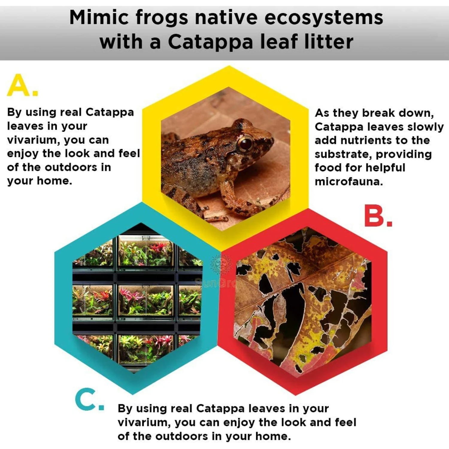 SunGrow Mini Catappa Frog & Gecko Leaf Litter, Bioactive Substrate For Reptile Vivarium, 50 Count