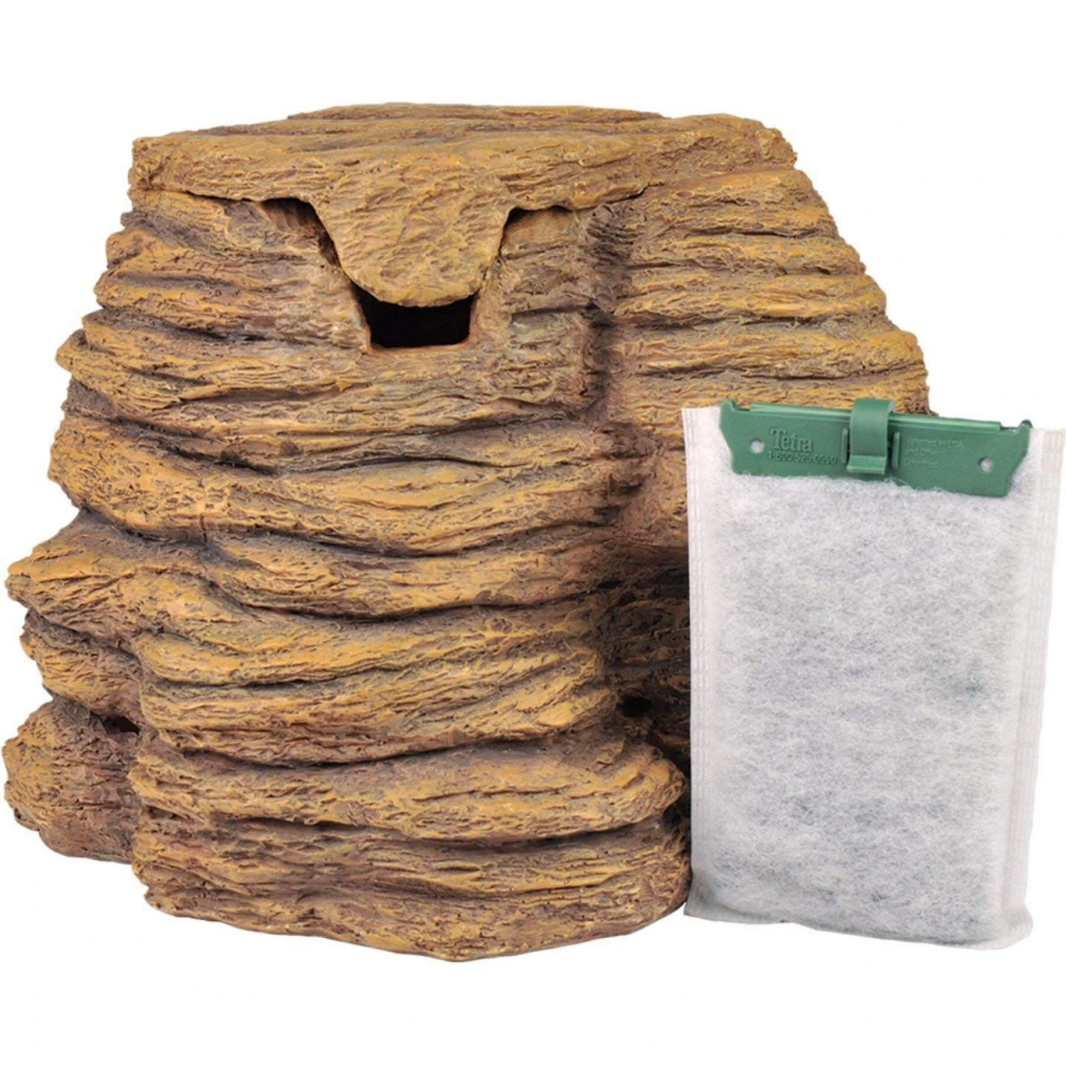 - The beautiful faux-rock ReptoFilter provides three-stage filtration, a basking platform for your BFF to rest, all while delivering an eye-catching waterfall.