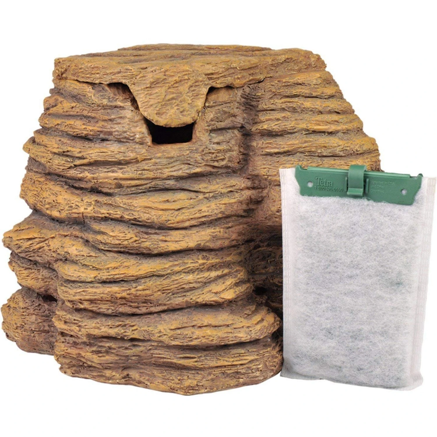 - The beautiful faux-rock ReptoFilter provides three-stage filtration, a basking platform for your BFF to rest, all while delivering an eye-catching waterfall.