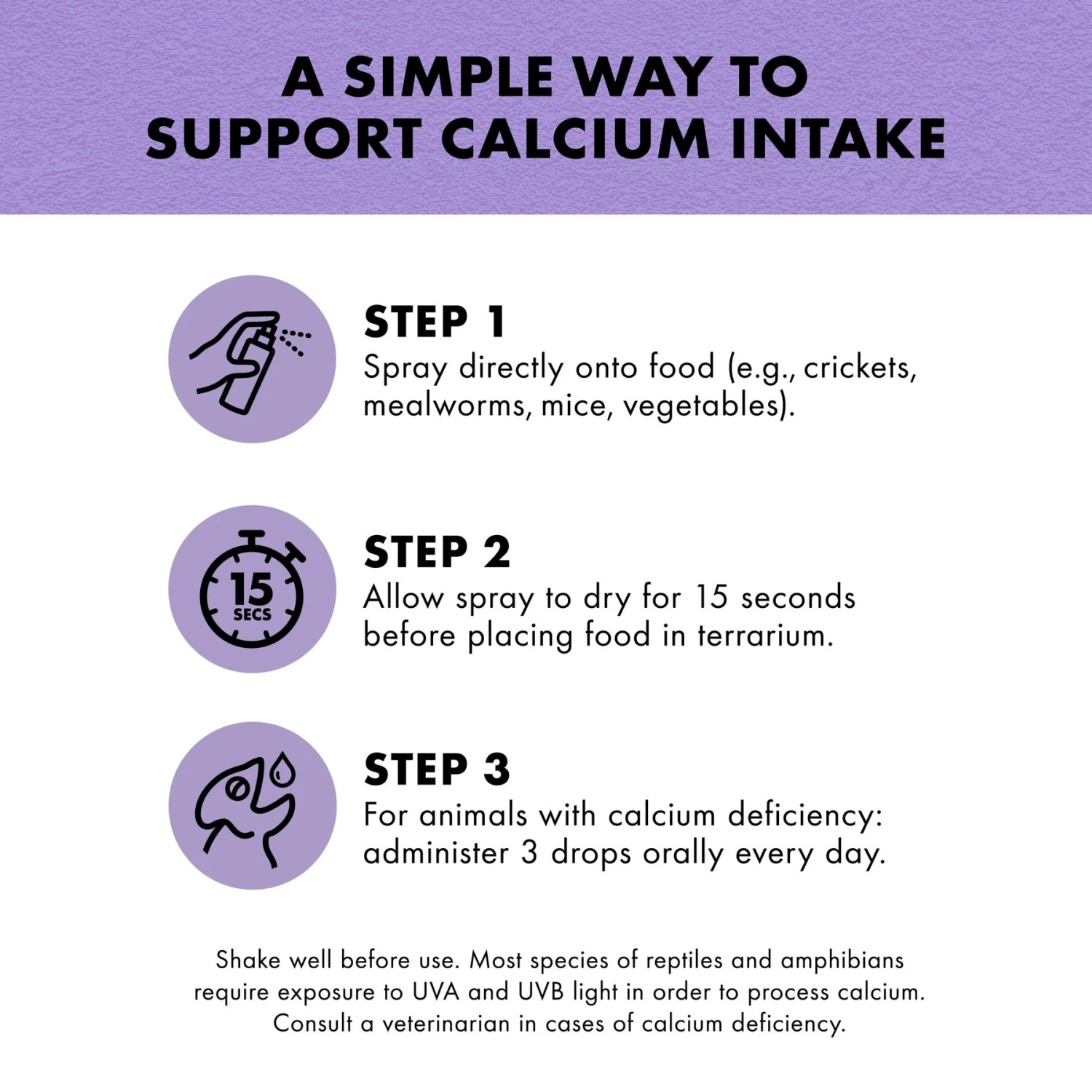- If necessary, you can apply a few drops directly to your pet’s mouth to quickly and effectively treat a calcium deficiency.