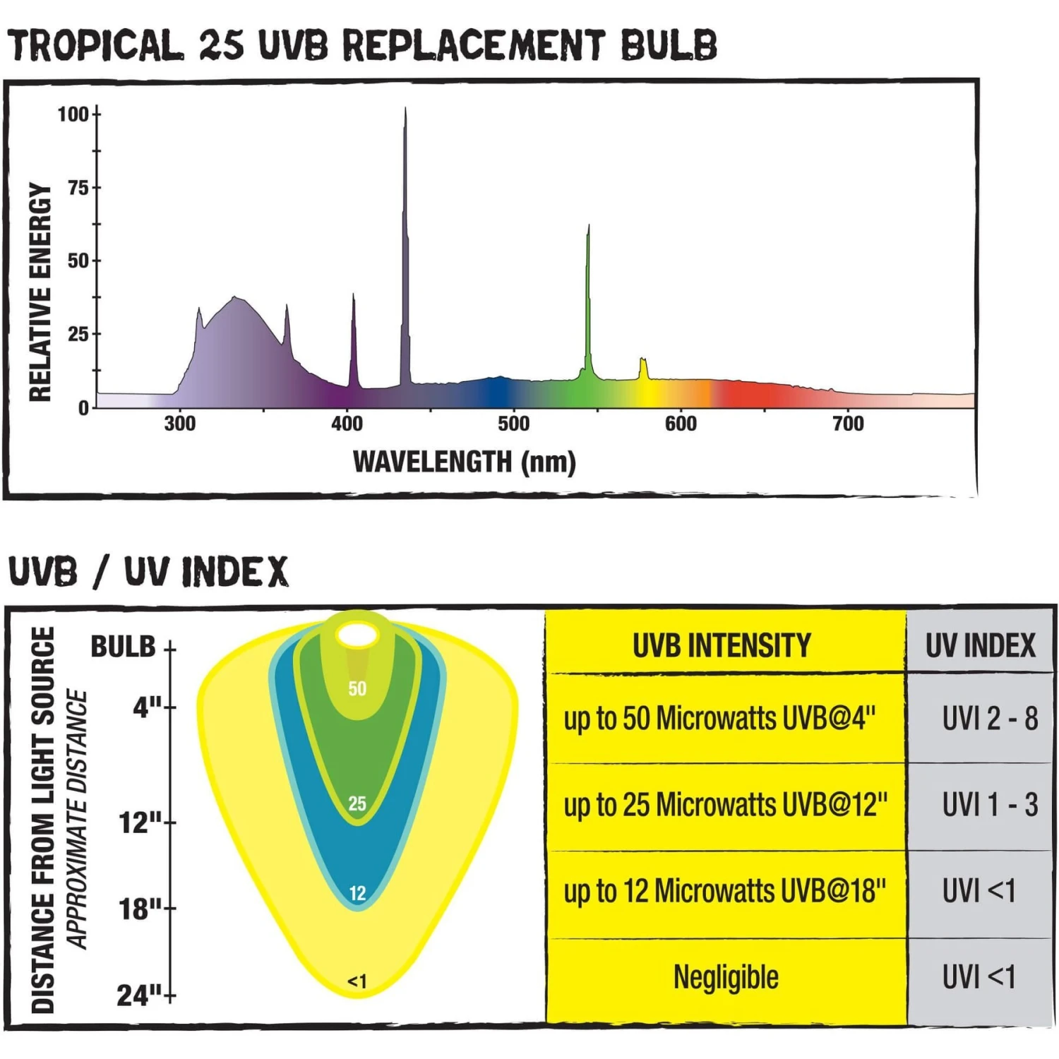 - Each bulb provides up to twelve months of proper UVB levels for tropical species.